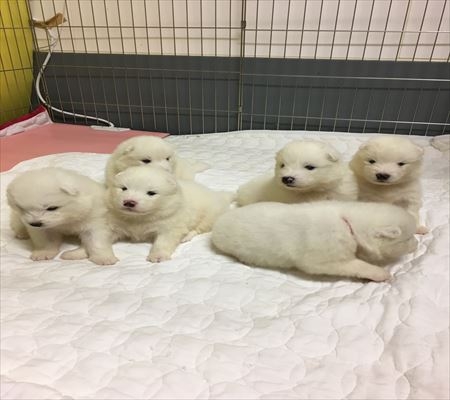 サモエド INT.CH.CH(JKCインターチャンピオン)桃太郎君❤INT.CH.CHエヴァン君の娘シャーロットのかわいい子犬が産まれました❤❤