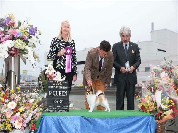 3月5日(日)広島ルイスファンシャーズクラブ展にてパピヨンキサキちゃんの子ミラクルちゃん(生後4ヶ月と1週間)がベビーリザーブクィーン頂きました!!!初めてのドッグショーにもかかわらず楽しそうに走ってかっこよくポーズを決めてよく頑張りました)^o^(